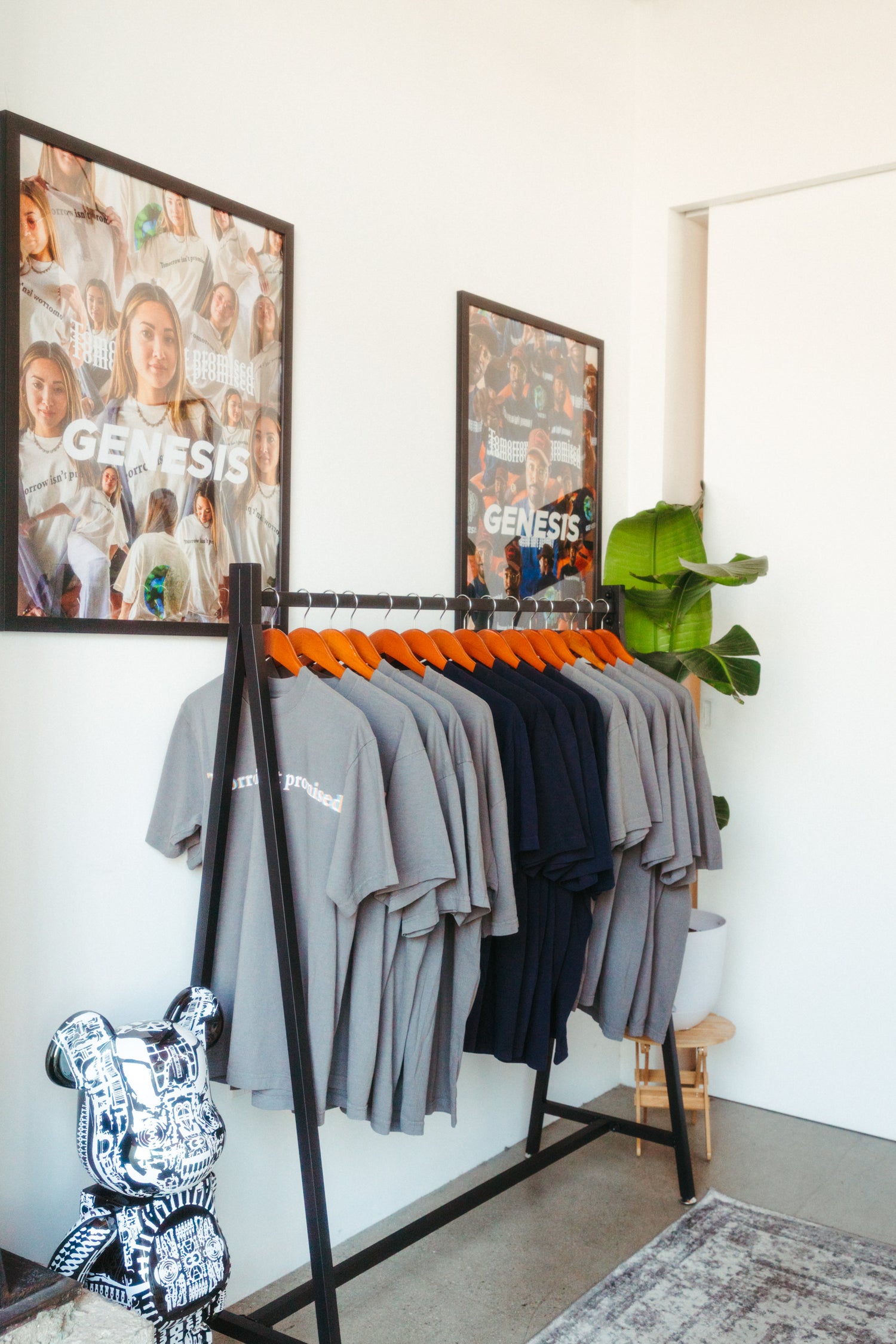 OUR TIP.SUPPLY POPUP AT THE GENESIS LAUNCH EVENT FEATURED A SNEAK PREVIEW OF OUR FIRST APPAREL COLLETION WITH LIMITED PIECES AVAILABE FOR PURCHASE.